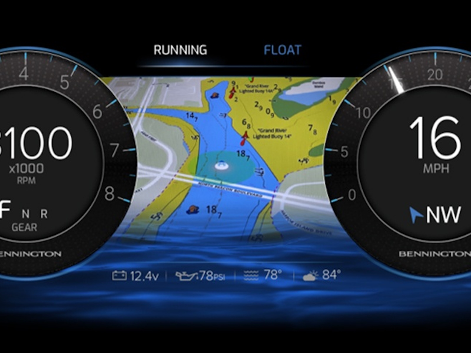 Bennington’s new optional mapping feature delivers intuitive navigation with data tailored to pontoon boaters—like sandbars, marinas, and shallow zones. Integrated into Vivid UX, it replaces most costly multi-functional displays, simplifying your ride while elevating the experience.