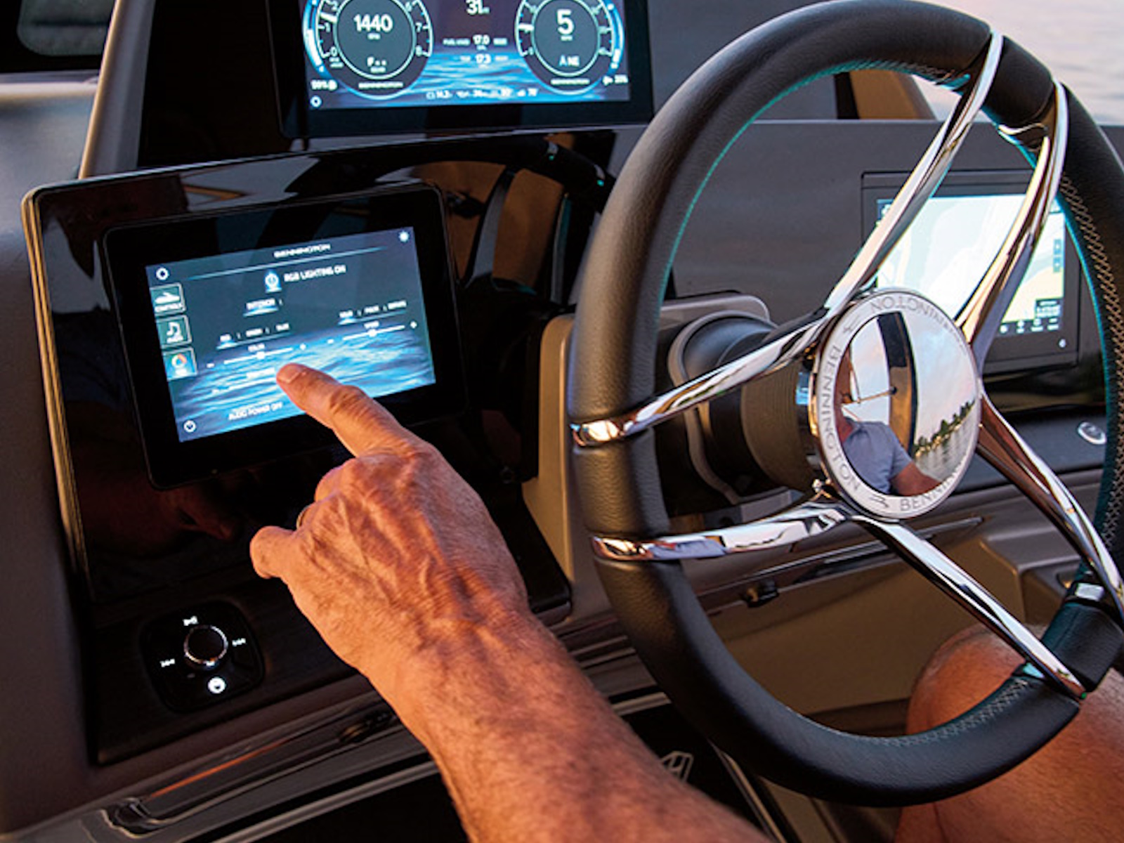 Enhance your boat’s ambiance with interior and exterior RGB lighting. These lights provide a soft, festive glow that sets the perfect mood for enjoying every moment on the water